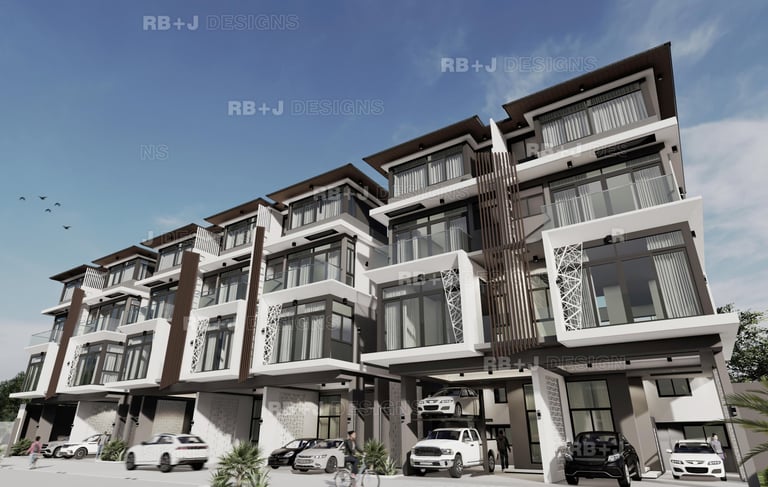 Four Storey Townhouses with Basement3 car garage convertible to 5, 4 bedrooms, 6 toilet and bath, with laundry and yard